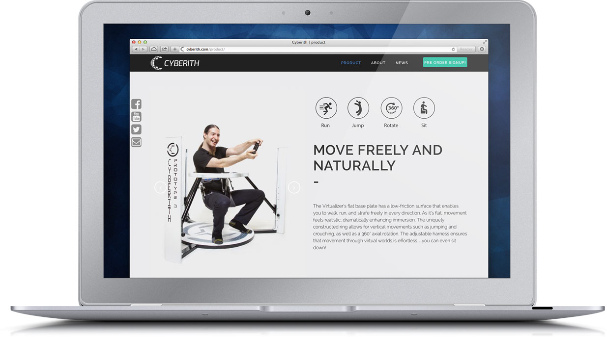 Rebranding of the Cyberith brand with new look, new logo and design.